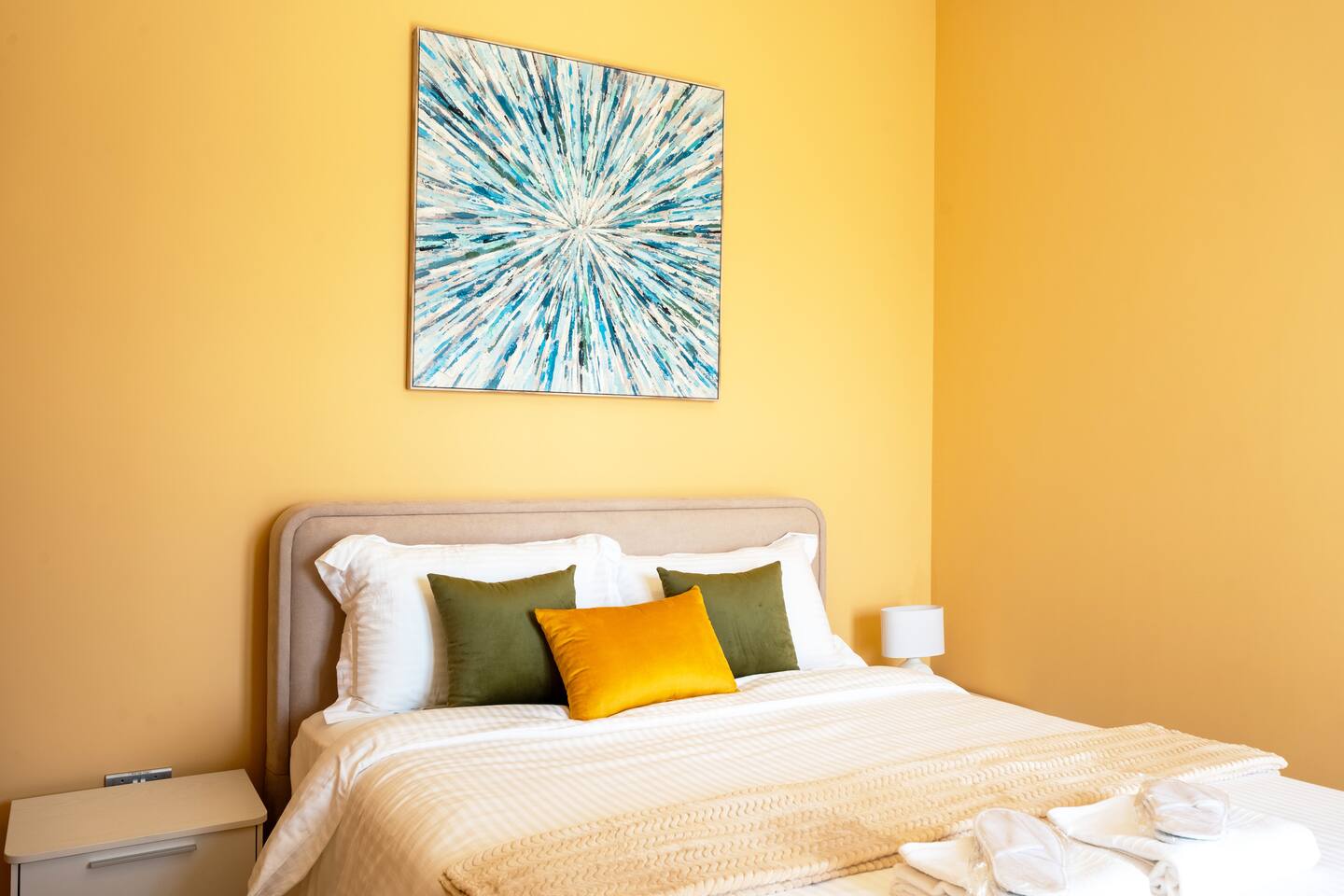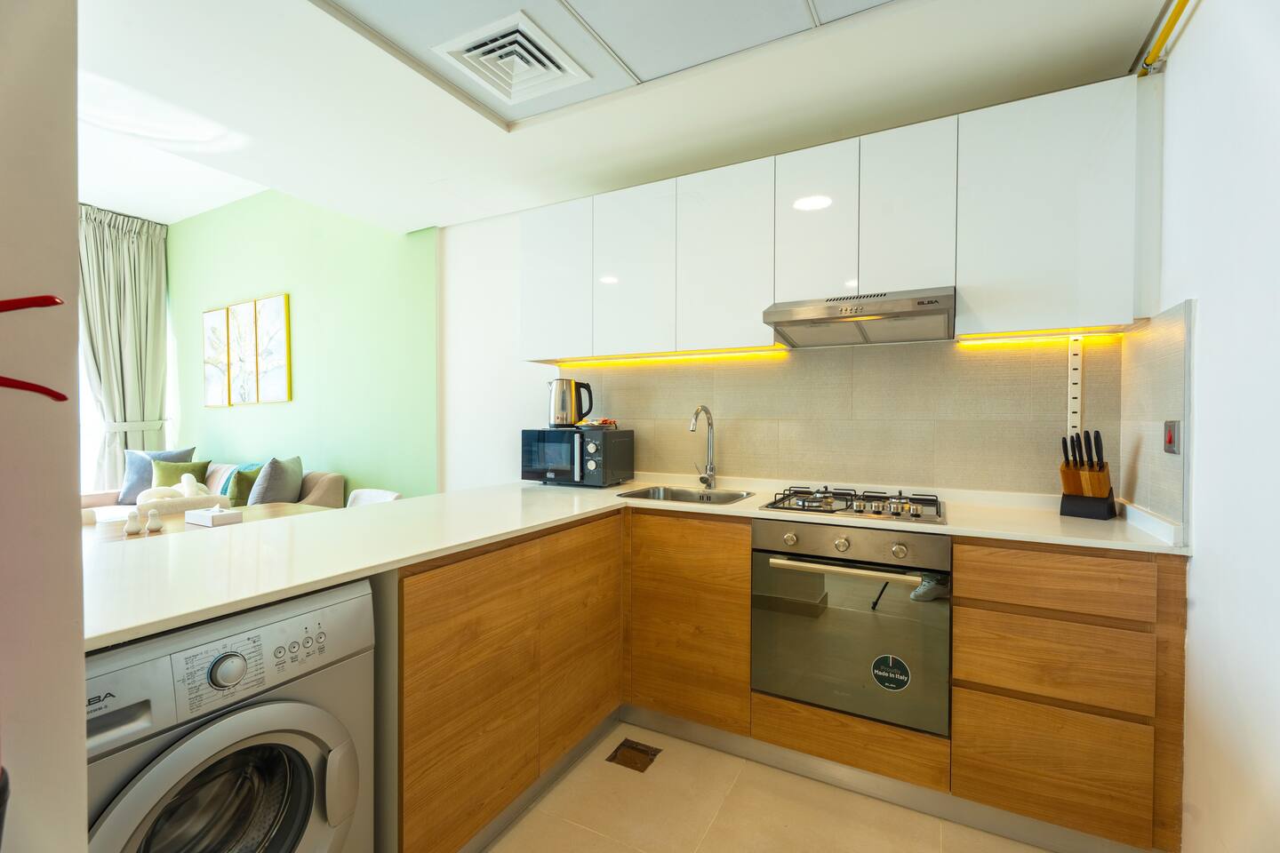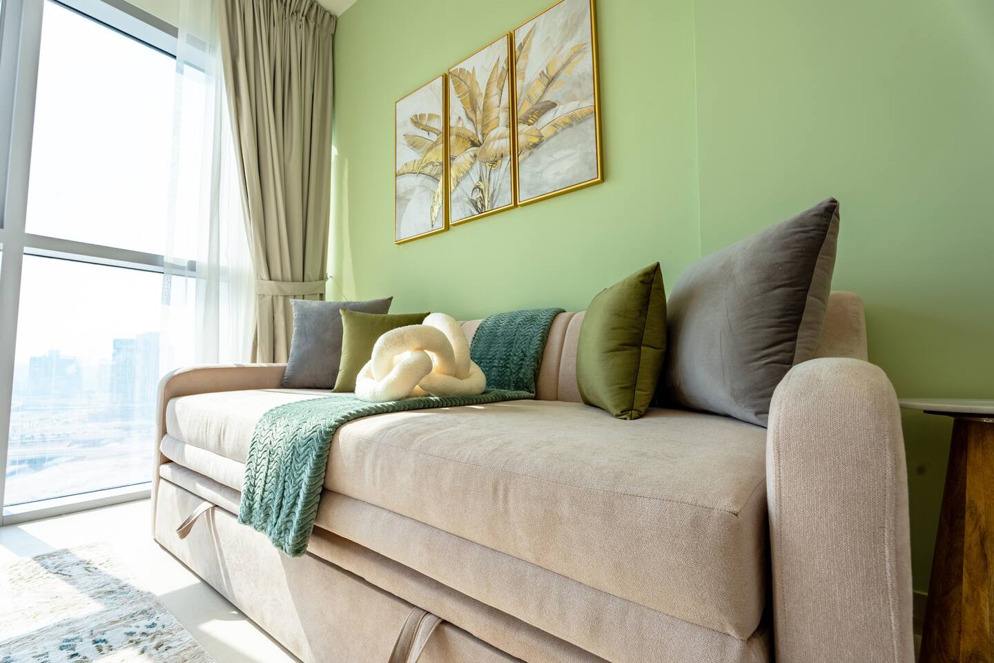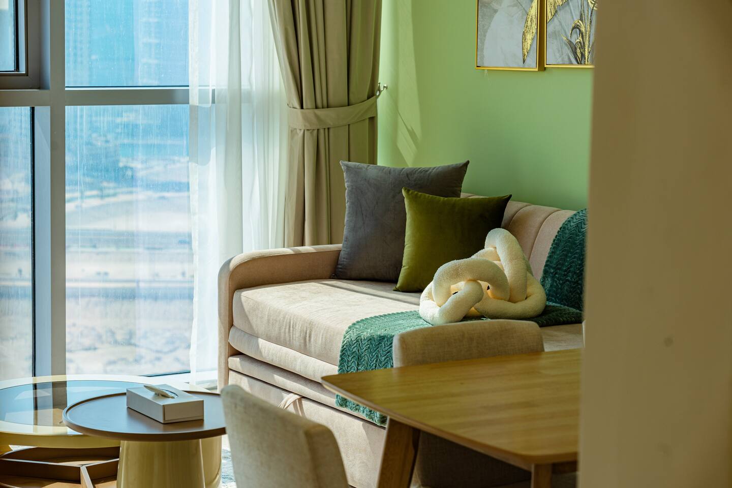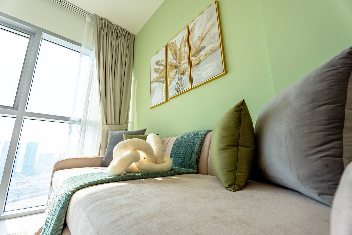 🛏️ What You’ll Get: Two cozy queen-size beds A comfy sofa bed in the living area Sleeps 7–8 guests comfortably Soft linens, fresh towels, and extra bedding provided 📺 Entertainment & Comfort: Huge 65-inch Smart TV for movie nights or catching up on your favorite shows High-speed Wi-Fi Fully equipped kitchen with modern appliances Central AC and in-unit washing machine 🌇 Panoramic Views & Prime Location: Enjoy stunning views of Reem Island from the apartment’s large windows Set in a secure, peaceful building with convenient access to nearby cafes, supermarkets, and major city attractions 🧼 Fresh & New: Spotlessly clean, thoughtfully designed, and brand-new—be one of the first to stay! This apartment is perfect for both short and extended stays. Whether you're here to explore Abu Dhabi, visit Yas Island, or just unwind, you’ll feel right at home.