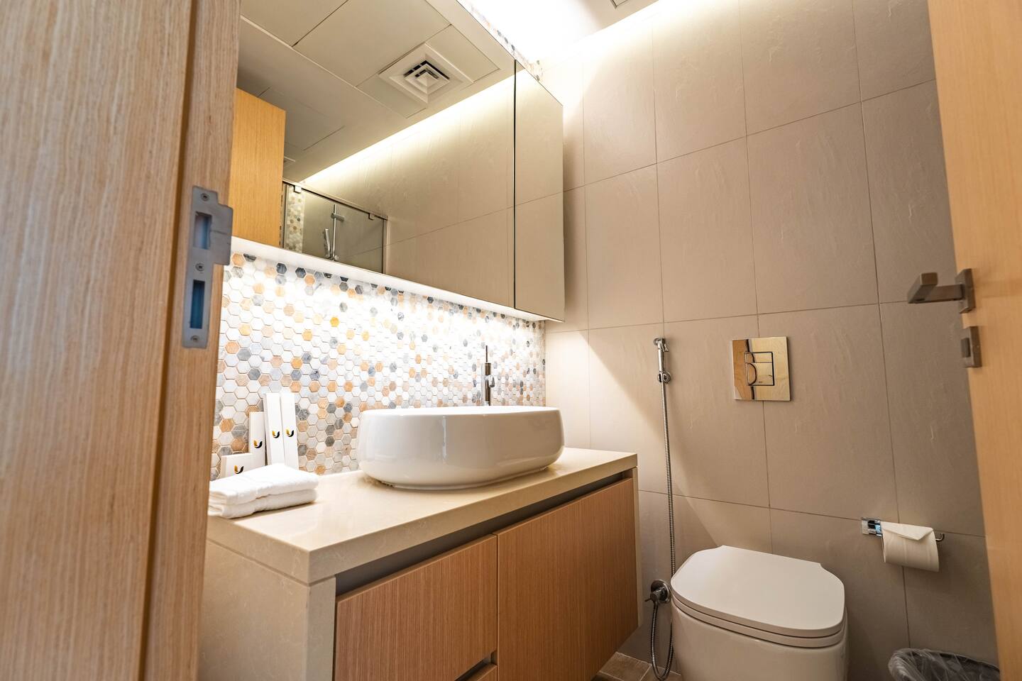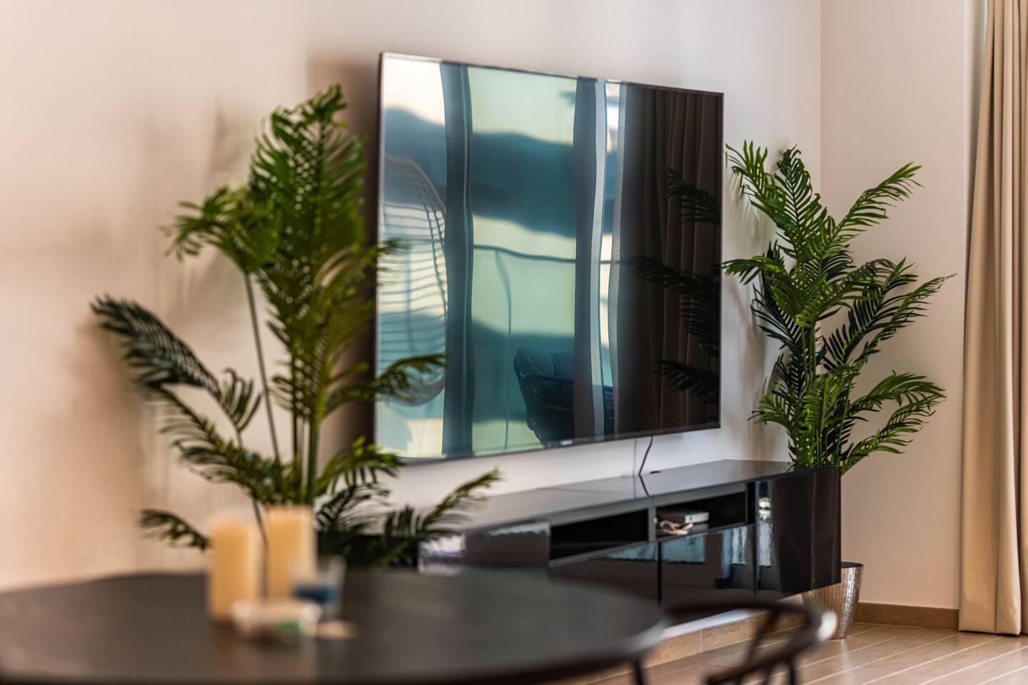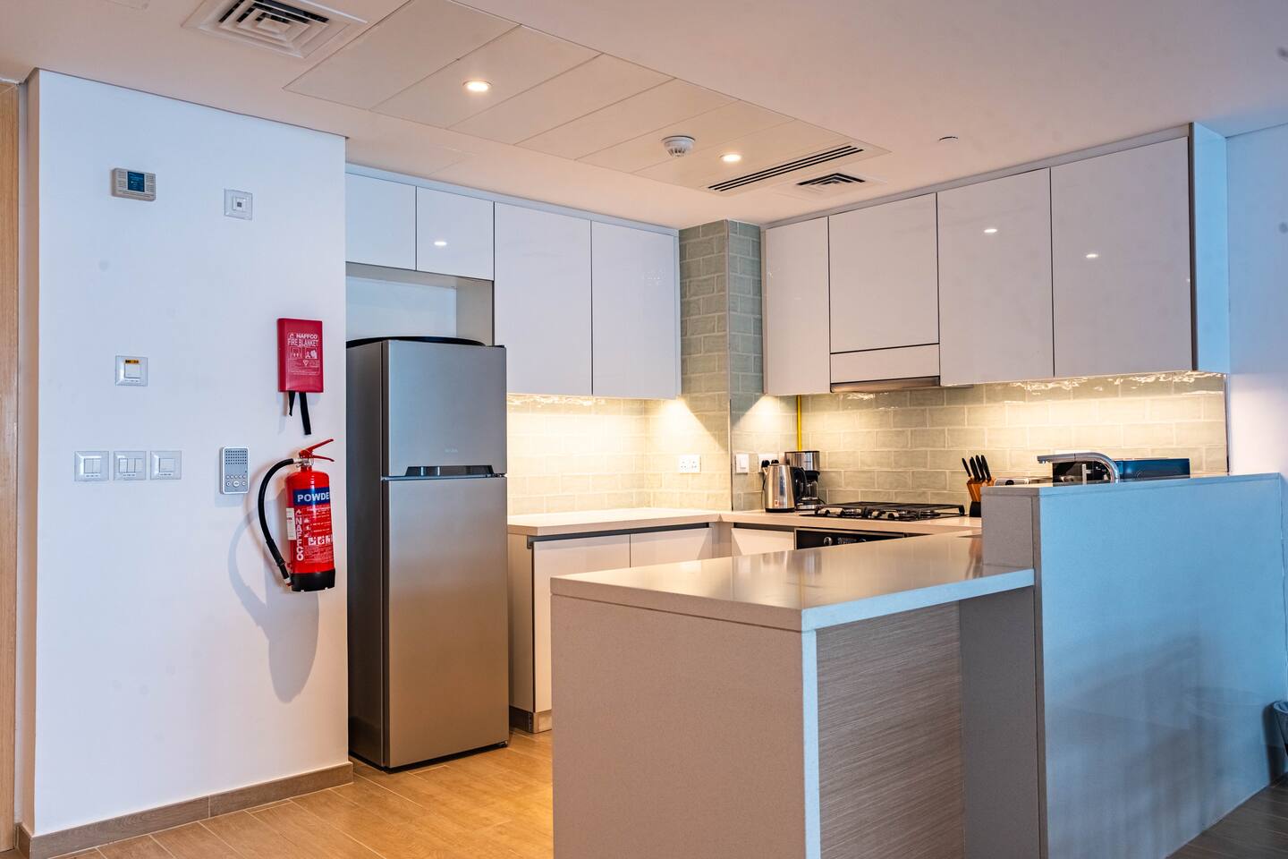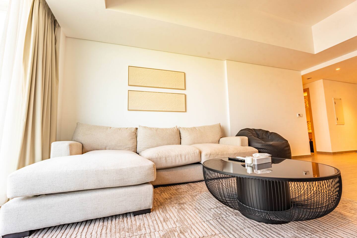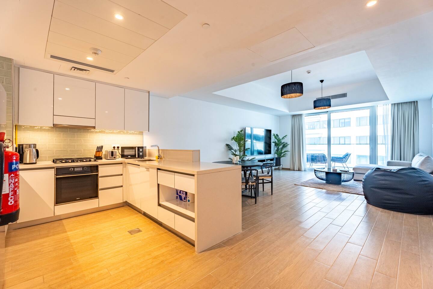 Guests will have full and exclusive access to the entire apartment during their stay, including: Both bedrooms Bathrooms Fully equipped kitchen Living and dining areas Private balcony with water view In-unit washer/dryer 85" Smart TV and high-speed Wi-Fi One free parking space You’ll also have access to the building amenities, including: Swimming pool Gym Kids’ play area 24/7 security Self check-in is available for your convenience.