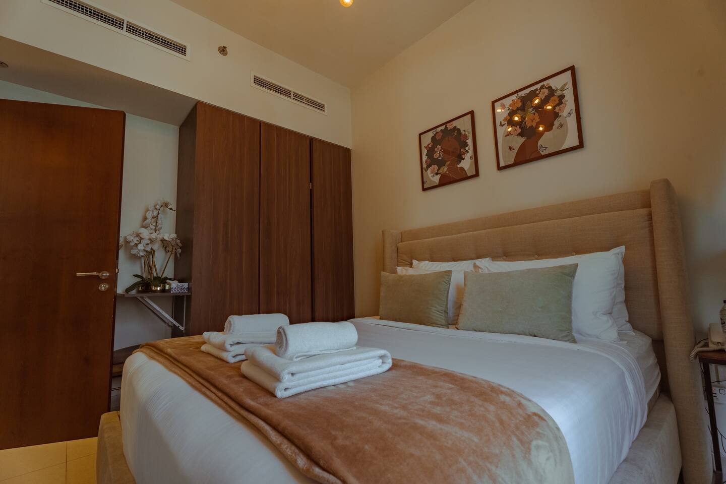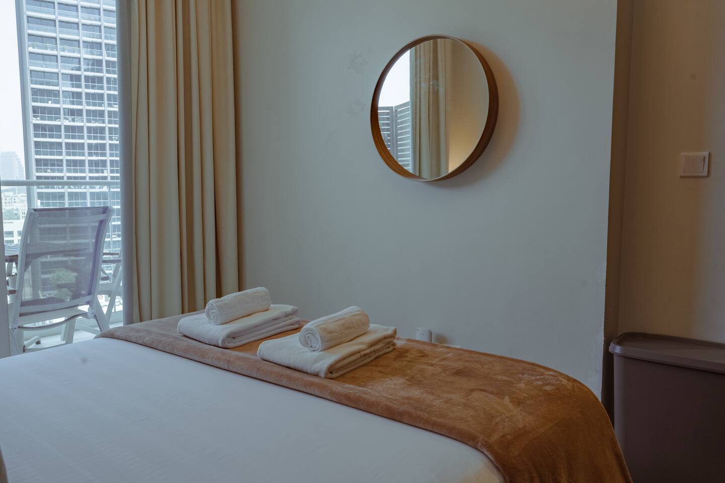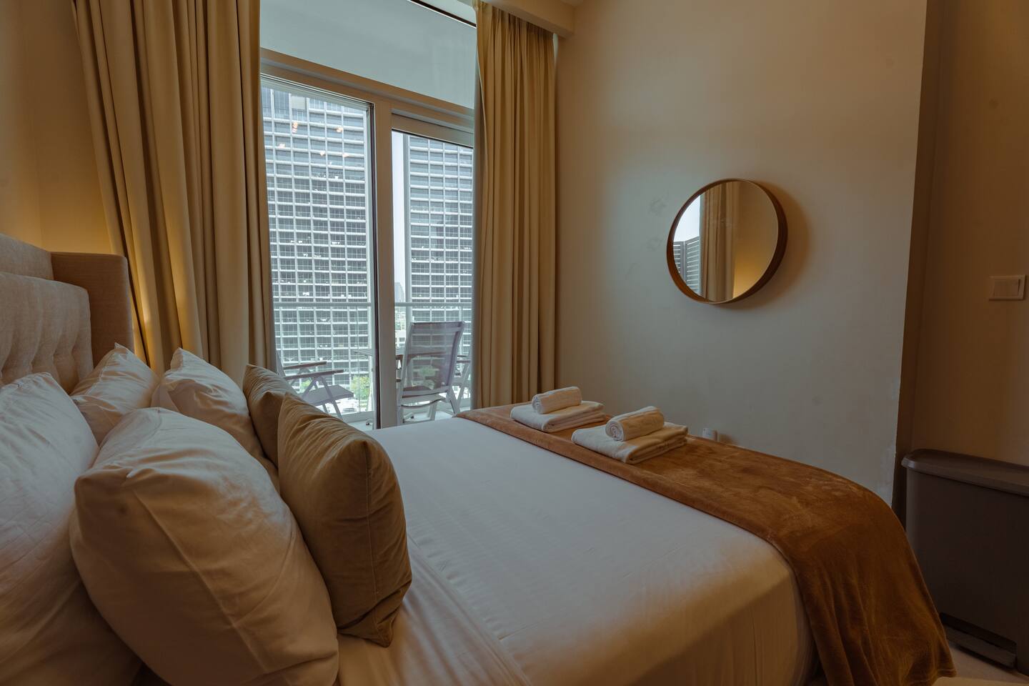 Modern 1BR apartment at Reva Residences by DAMAC in Business Bay. Features a queen bed + sofa bed, balcony with canal views, full kitchen, smart TV, Wi-Fi, and self check-in. Guests enjoy access to pool, gym, sauna, kids’ area, BBQ, and 24/7 security. Just minutes from Burj Khalifa, Dubai Mall, and Metro. Walk to Dubai Water Canal, cafes, and markets. Perfect for couples, small families, or business travelers.