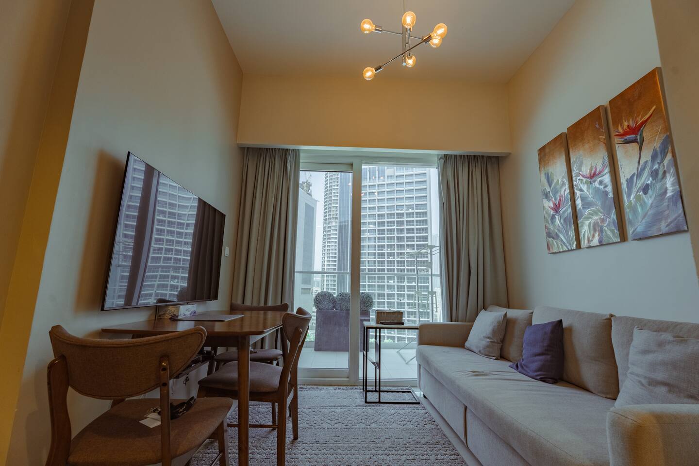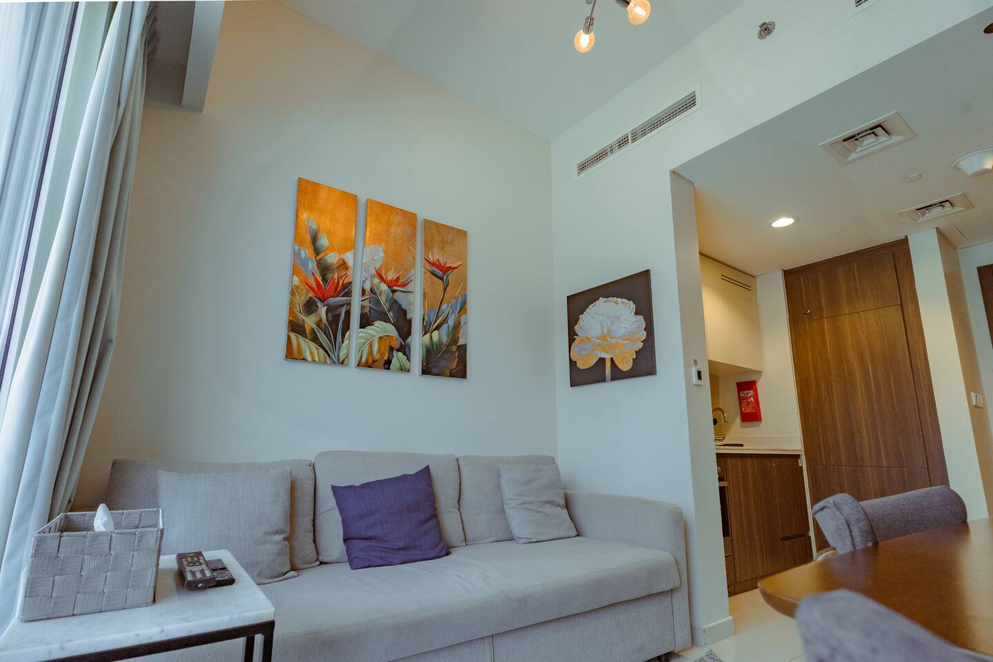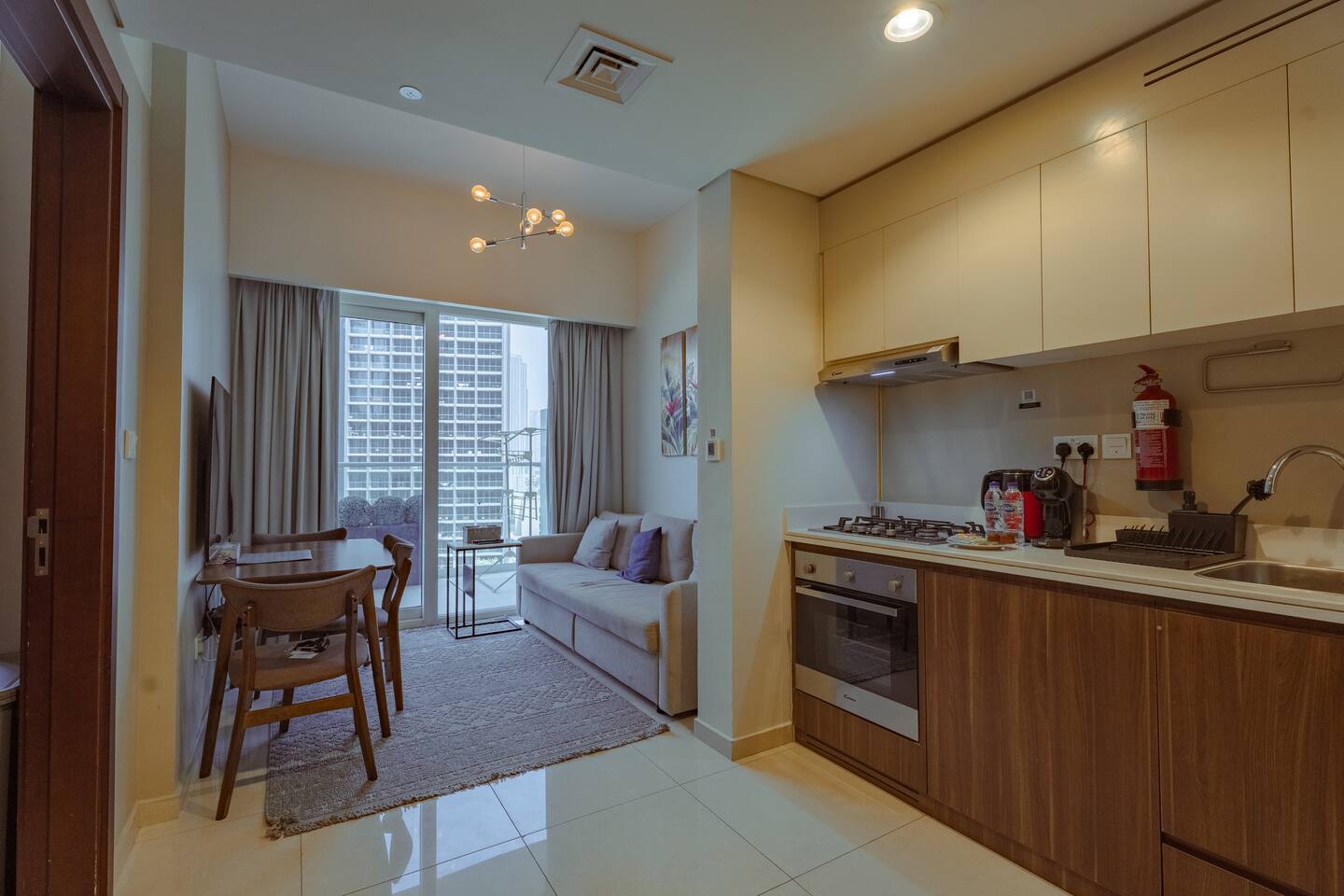 Welcome to your serene retreat at Reva Residences by DAMAC – a beautifully sleek 1-bedroom apartment with a sofa bed and private balcony, located on Marasi Drive in vibrant Business Bay. This modern unit features a queen-sized bed in the bedroom and a convertible sofa bed in the living area, comfortably sleeping up to 4 guests. Relax in the stylish living room with Smart TV and direct balcony access. The balcony offers peaceful views over the Dubai Water Canal promenade and glimpses of the Downtown skyline. A fully equipped kitchenette includes premium appliances: oven, gas hob, microwave, Nespresso coffee machine, kettle, and essential cookware. Enjoy meals in your cozy dining area. Live Well Stays 🏢 Building & Amenities As a guest, you have full access to all building facilities: Heated swimming pool, children’s pool, and landscaped gardens Fully equipped gym, sauna, steam room Children’s playground and BBQ / outdoor lounge areas Rooftop terrace and water taxi access to Dubai Canal 24/7 concierge, security, free high‑speed Wi‑Fi & covered parking ✅ Convenience & Self Check‑In Enjoy flexible, hassle‑free entry with self check‑in. All utilities—electricity, water, AC/chiller, Internet—are included. 📍 Location Highlights Located in upscale Business Bay, along the scenic Dubai Water Canal promenade. Downtown Dubai: Burj Khalifa, Dubai Mall, Dubai Opera & Fountain within a 6–10 minute drive. Easily accessible via Business Bay Metro Station (~7 min drive), and major roads like Sheikh Zayed Road and Al Khail Road within minutes. Public transport, taxis, and bus routes nearby. Closest dining options include CAVO Restaurant, Gino’s Deli, Leila, Maru Udon, BASTA!, and more—all under a 10-minute drive. Choithrams, Bay Market, and Al Adil Supermarket are within a short walk.
