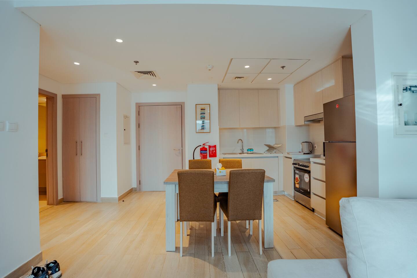 Guests will have full, private access to the entire apartment during their stay, including the balcony and all in-unit amenities such as the kitchen, washer, and Wi-Fi. You’ll also enjoy complimentary access to the building’s luxury facilities—infinity pool, gym, jogging track, BBQ areas, and secure underground parking. Check-in is seamless with 24/7 support via Airbnb chat to ensure a smooth and comfortable stay.