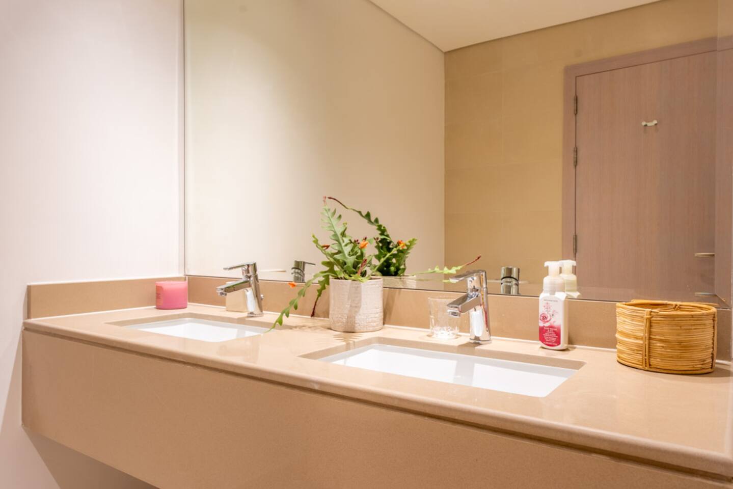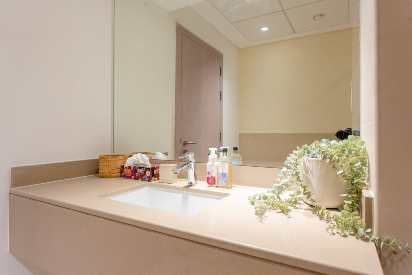 Welcome to your spacious 2‑bedroom retreat at Waters Edge, Yas Island, perfect for families or groups of friends looking to experience the best of Abu Dhabi. 🛏️ The Space 2 king-size bedrooms with premium linens Comfortable sofa bed in the living room—sleeps up to 5 guests 2 full bathrooms, plus in-unit laundry for convenience Bright living/dining area with Smart TV and fast Wi‑Fi Enjoy al fresco time on the canal-view balcony, ideal for sunrise coffee or evening drinks Private entrance on the ground floor and secure covered parking 🏢 Amenities at Waters Edge Resort-style swimming pools, sun decks, and a fully equipped gym Scenic 800 m canal-side promenade with jogging/cycling paths, playgrounds, BBQ zones, cafés, and retail outlets 24/7 security, underground parking, and concierge services 📍 Prime Yas Island Location Just 5 min drive (1.4 km) from Yas Mall—featuring 400+ stores, a cinema, and dining Minutes to top theme parks—Ferrari World, Warner Bros. World, & Yas Waterworld (5–7 min drive) Explore SeaWorld Abu Dhabi—opened in 2023—for immersive marine experiences (10 min) Yas Marina Circuit (F1 racing) is a quick 5-minute drive Reach Yas Beach, Yas Links Golf Club, and Etihad Arena in under 10 minutes ✈️ Getting Here ~15 min (8 km) to Abu Dhabi International Airport by car ~75 min from Dubai International Airport 💖 Why It Works for You Flexible sleeping for up to 5 guests with the sofa bed Waterfront charm with canal views, balcony, and walking paths All-inclusive resort vibe: pools, gym, BBQ, promenade cafés Steps from action: malls, theme parks, beach, golf & racing Secure, family-friendly, and with easy airport access