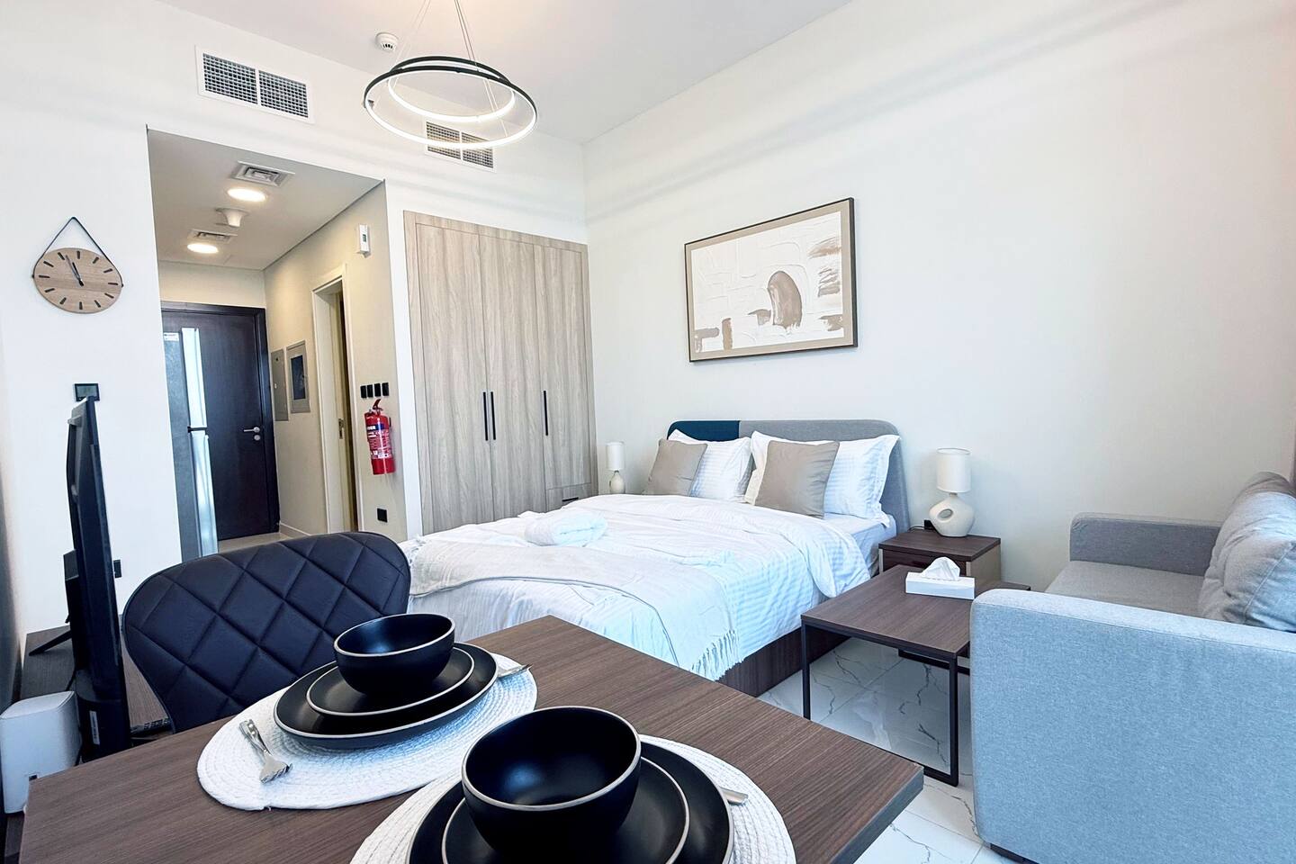 Stay in this modern studio apartment, perfect for 2 guests. Featuring a cozy queen-size bed, it’s ideal for couples, solo travelers, or business visitors. Just minutes from Abu Dhabi Airport and close to Yas Island, water parks, and attractions, this unit offers both comfort and convenience. Enjoy pool and gym access, free parking, and discounted park tickets. Monthly stays are welcome at special discounted rates—message us for details!