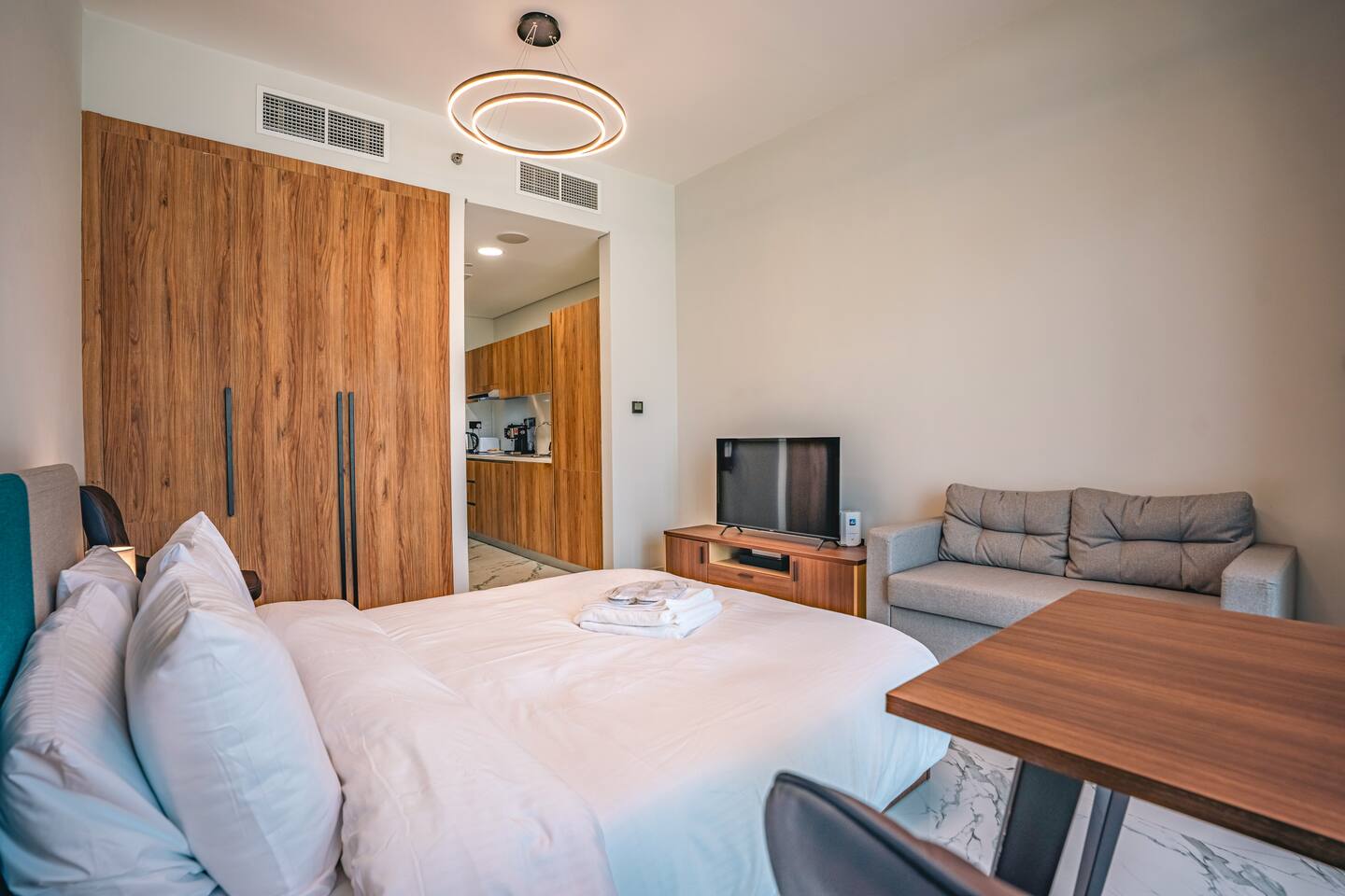Guests will have full private access to the studio apartment during their stay. You’ll also enjoy access to the building’s shared amenities, including: Swimming pool Fully equipped gym Lobby and reception area 24/7 security Self check-in is available for your convenience. Free street or building parking may be available depending on availability.