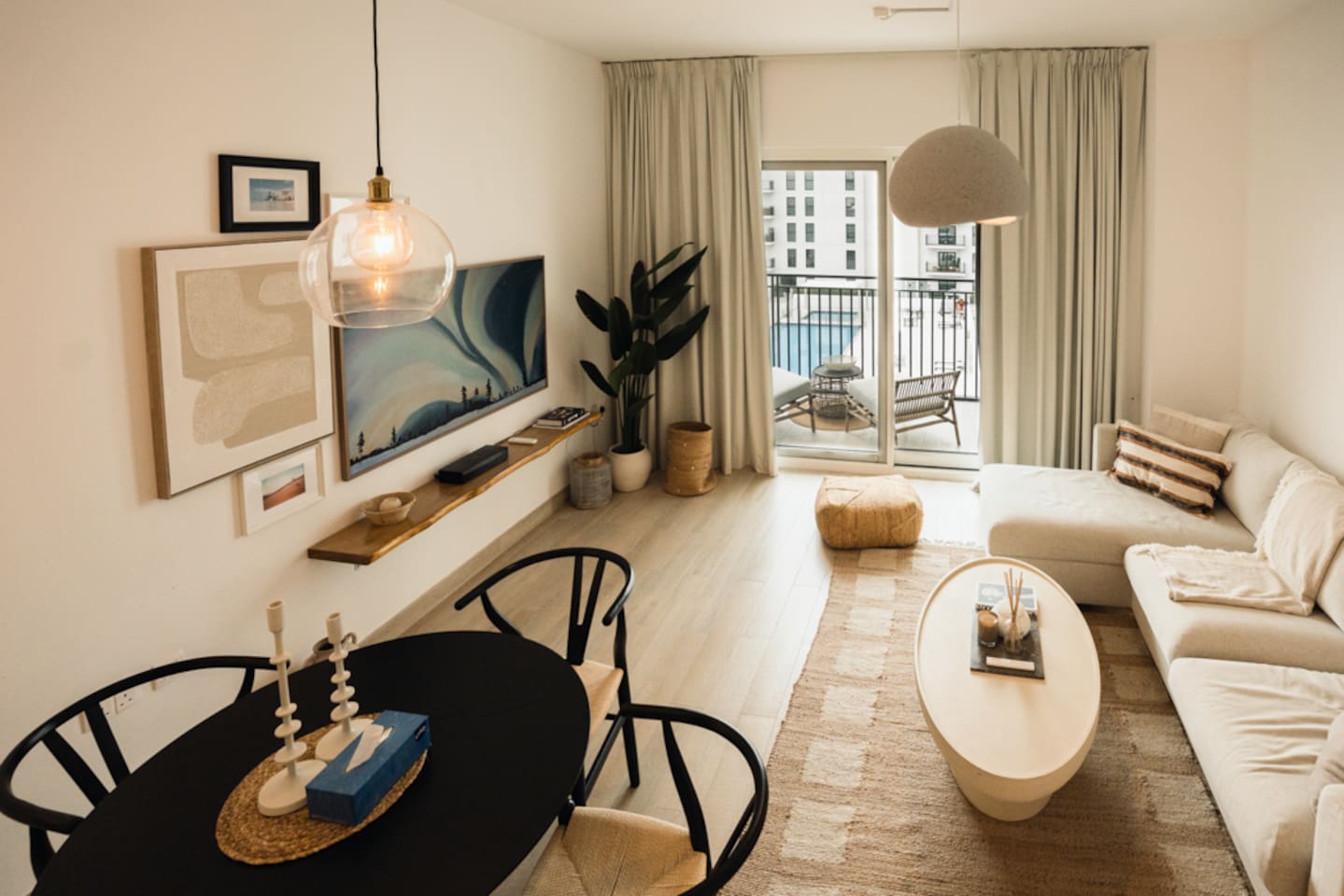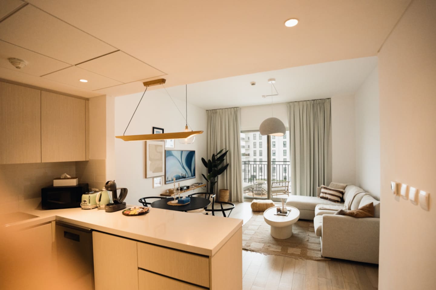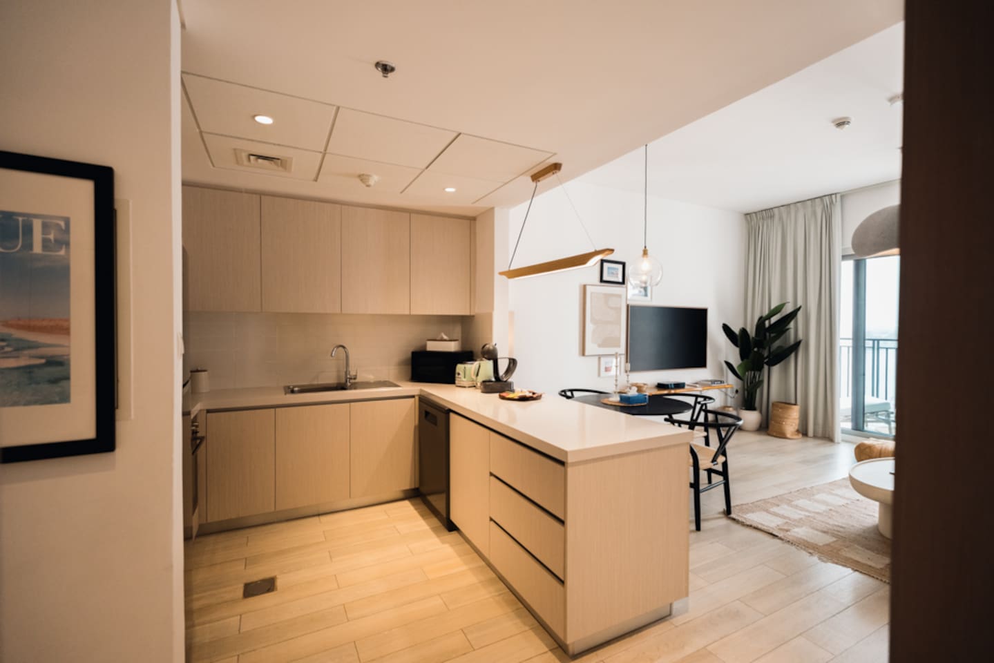 🌊 Elegant 2BR Waterfront Apartment | Lake & Pool View – Yas Island Spacious | Scenic | Ideal for Families or Business Travelers Discover relaxed island living at its finest in this stylish 2-bedroom, 2-bathroom apartment in the heart of Water’s Edge, Yas Island. With serene canal views, modern interiors, and access to resort-style amenities, this home offers the perfect balance of comfort, convenience, and location. 🏠 Apartment Features 1,000–1,070 ft² (~93–100 m²) of open-plan living with floor-to-ceiling windows Spacious balcony with views of the canal, lake, or pool Two well-sized bedrooms—master with en-suite bathroom Fully equipped modern kitchen + laundry nook Cozy living/dining area with contemporary furnishings High-speed Wi-Fi, central A/C, and secure underground parking 🏢 Water’s Edge Community Amenities Adult & children’s swimming pools Two gyms, multipurpose sports courts, BBQ zones & kids' play areas Scenic 800m waterfront boardwalk with jogging/cycling trails Cafés, restaurants, Carrefour, bakery cafés, and retail right on your doorstep 24/7 security, concierge, and on-site convenience stores, pharmacy, and services 📍 Yas Island’s Top Attractions – All Within Minutes 🛍️ Shopping, Dining & Entertainment: Yas Mall – 400+ stores and eateries (5 min) Yas Marina Circuit, Yas Marina, and Yas Beach – all nearby 🎢 Family Fun & Theme Parks: Ferrari World – ~4 min Yas Waterworld – ~3 min Warner Bros. World, CLYMB, SeaWorld Abu Dhabi – ~5–10 min ⛳ Sports & Leisure: Yas Links Golf Course, Yas Park 1, West Yas Plaza Nearby access to Burjeel Medical Centre and international schools like SABIS & Yas American Academy ✈️ Easy Travel Connections: ~15 min to Abu Dhabi International Airport ~20 min to Saadiyat Island & Downtown Abu Dhabi ~50 min to Dubai